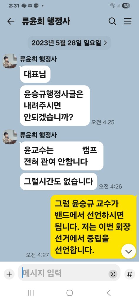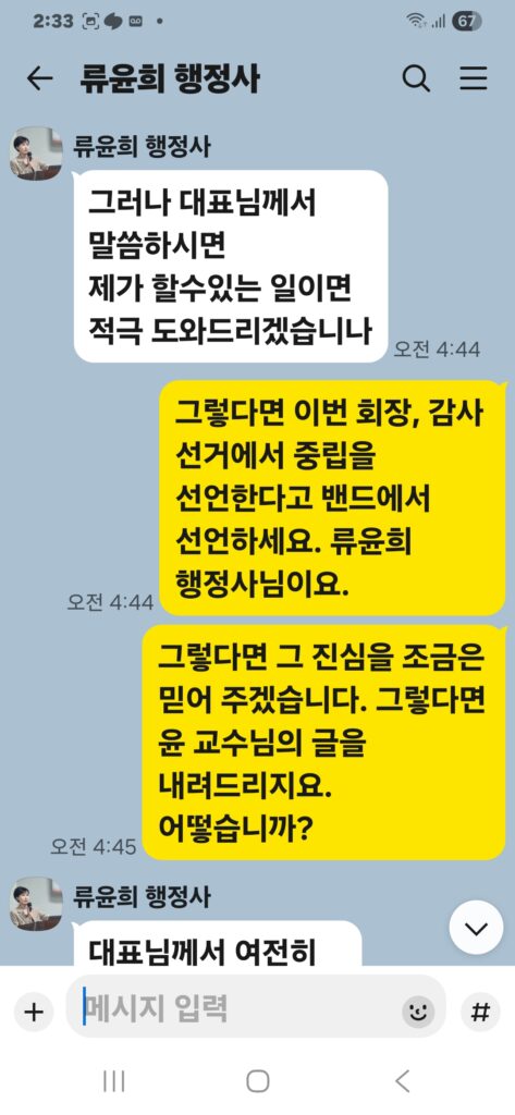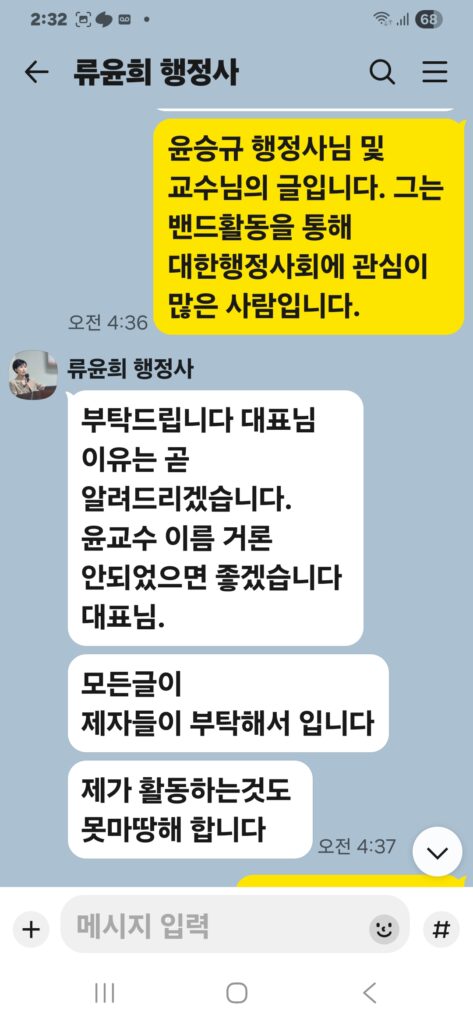 그것은, 그가 더 이상 대한행정사회를 이끌 자격이 없음을 스스로 증명하는 것이다.