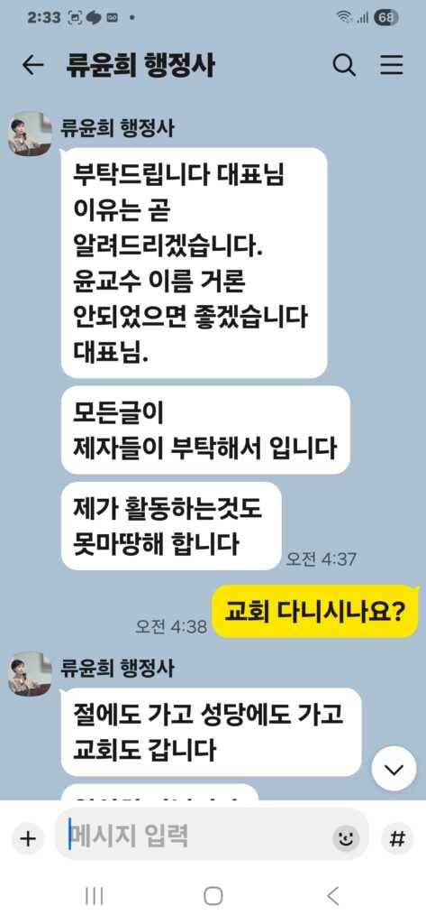 윤승규 대한행정사회장 배우자 류윤희, 남편의 친위쿠데타 본진 용산 대통령실 진입 위해 애걸