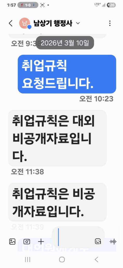 그러나 남상기 사무총장은 “취업규칙은 비공개 사항”이라며 이를 거부한 것으로 확인됐다.
